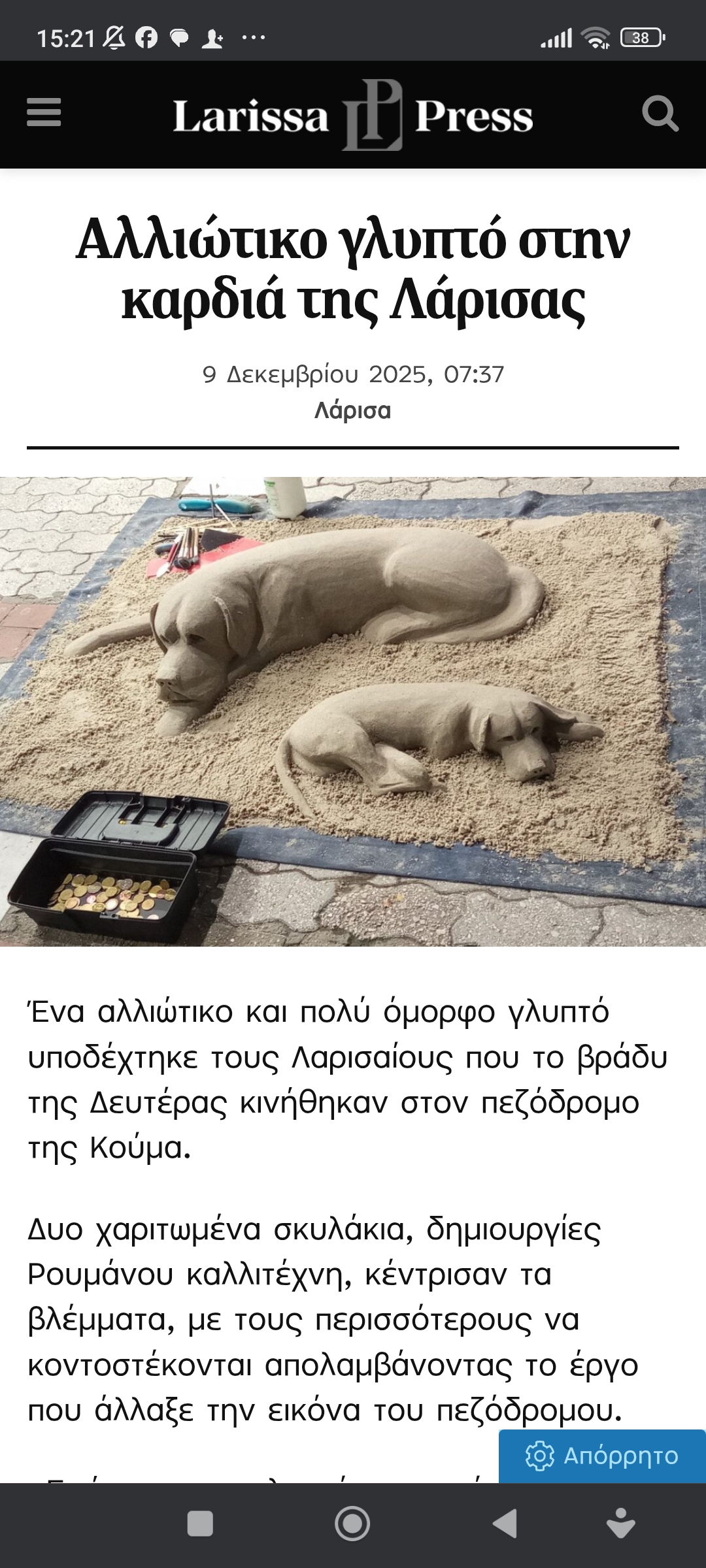 Θεσσαλία / ΛάρισαΌλα είναι τέχνη; Πέτρος Ιωάννου4 μήνες ago4 μήνες ago01 mins Μάλλον… 9/12/2025 https://www.larissapress.gr/2025/12/09/alliotiko-glypto-stin-kardia-tis-larisas Πλοήγηση άρθρων Previous: Νίκος Γκάτσος. Μακριά από τη συνάφεια του κόσμουNext: Λάθος ή ανοίγματα στο μέλλον; Αφήστε μια απάντηση Ακύρωση απάντησηςΗ ηλ. διεύθυνση σας δεν δημοσιεύεται. Τα υποχρεωτικά πεδία σημειώνονται με *Σχόλιο * Όνομα * Email * Ιστότοπος Αποθήκευσε το όνομά μου, email, και τον ιστότοπο μου σε αυτόν τον πλοηγό για την επόμενη φορά που θα σχολιάσω.