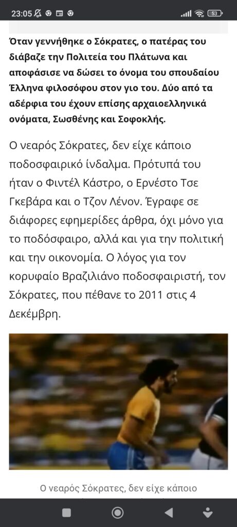 ΑθλητισμόςΣώκρατες. Εις μνήμην Πέτρος Ιωάννου4 μήνες ago4 μήνες ago01 mins 4/12/2025 Σόκρατες. Γιατρός και μπαλαδόρος. Έπινε, κάπνιζε, μάγευε και ασκούσε πολιτική στο γήπεδο. Τα αδέλφια του είναι ο Σωσθένης και ο Σοφοκλής Πλοήγηση άρθρων Previous: Μια μεγάλη και σοφή διαπίστωσηNext: Γιάννης Πανούσης: Μια ευχή για… Αφήστε μια απάντηση Ακύρωση απάντησηςΗ ηλ. διεύθυνση σας δεν δημοσιεύεται. Τα υποχρεωτικά πεδία σημειώνονται με *Σχόλιο * Όνομα * Email * Ιστότοπος Αποθήκευσε το όνομά μου, email, και τον ιστότοπο μου σε αυτόν τον πλοηγό για την επόμενη φορά που θα σχολιάσω.