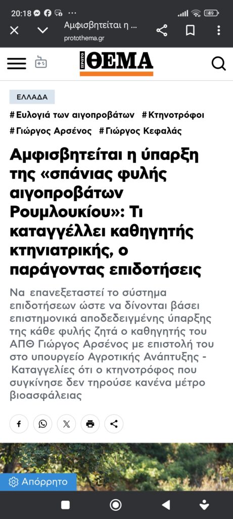 ΟικονομίαΑμφισβητείται η φυλή ρουμλουκίου Πέτρος Ιωάννου4 μήνες ago4 μήνες ago01 mins 10/12/2025 https://www.protothema.gr/greece/article/1740362/ti-sumvainei-me-ti-fuli-roumloukiou Πλοήγηση άρθρων Previous: Σκροποχώρι κι εντός ΝΔNext: Στα 200 χρόνια, μόλις 4 φορές ειπώθηκαν ψέματα; Αφήστε μια απάντηση Ακύρωση απάντησηςΗ ηλ. διεύθυνση σας δεν δημοσιεύεται. Τα υποχρεωτικά πεδία σημειώνονται με *Σχόλιο * Όνομα * Email * Ιστότοπος Αποθήκευσε το όνομά μου, email, και τον ιστότοπο μου σε αυτόν τον πλοηγό για την επόμενη φορά που θα σχολιάσω.