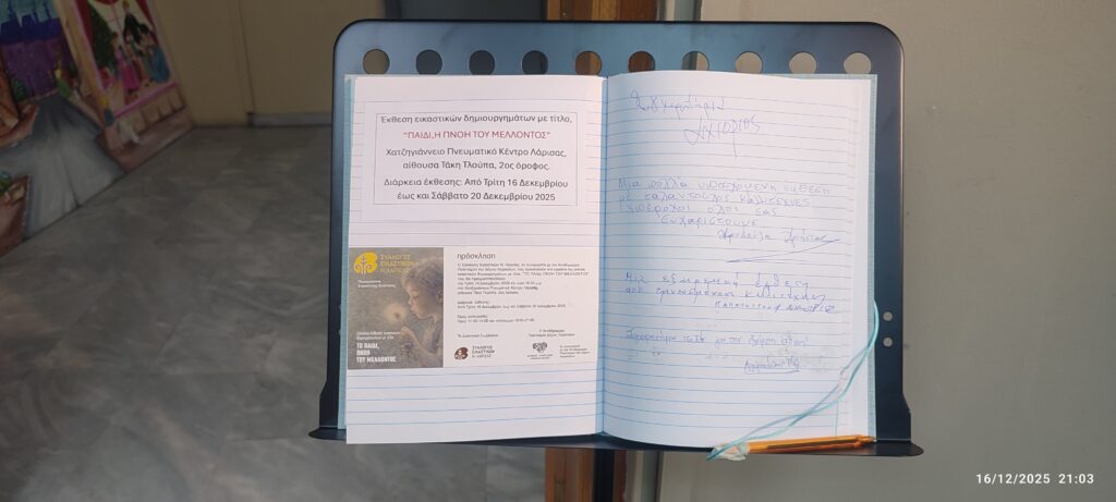 Εκπαίδευση / ΠολιτισμόςΈκθεση εικαστικών στο Χατζηγιάννειο πνευματικό κέντρο του Δήμου Λαρισαίων Πέτρος Ιωάννου4 μήνες ago4 μήνες ago01 mins 20/12/2025 κεντρικοί χώροι κτηρίου Έργο του Παπανικολάου στην κλίμακα του κτηρίου Πλοήγηση άρθρων Previous: Σκίτσο του Κώστα Σκλαβενίτη για τα ΝΕΑNext: Θεαματική βελτίωση των οικονομικών του Δήμου Λαρισαίων Αφήστε μια απάντηση Ακύρωση απάντησηςΗ ηλ. διεύθυνση σας δεν δημοσιεύεται. Τα υποχρεωτικά πεδία σημειώνονται με *Σχόλιο * Όνομα * Email * Ιστότοπος Αποθήκευσε το όνομά μου, email, και τον ιστότοπο μου σε αυτόν τον πλοηγό για την επόμενη φορά που θα σχολιάσω.
