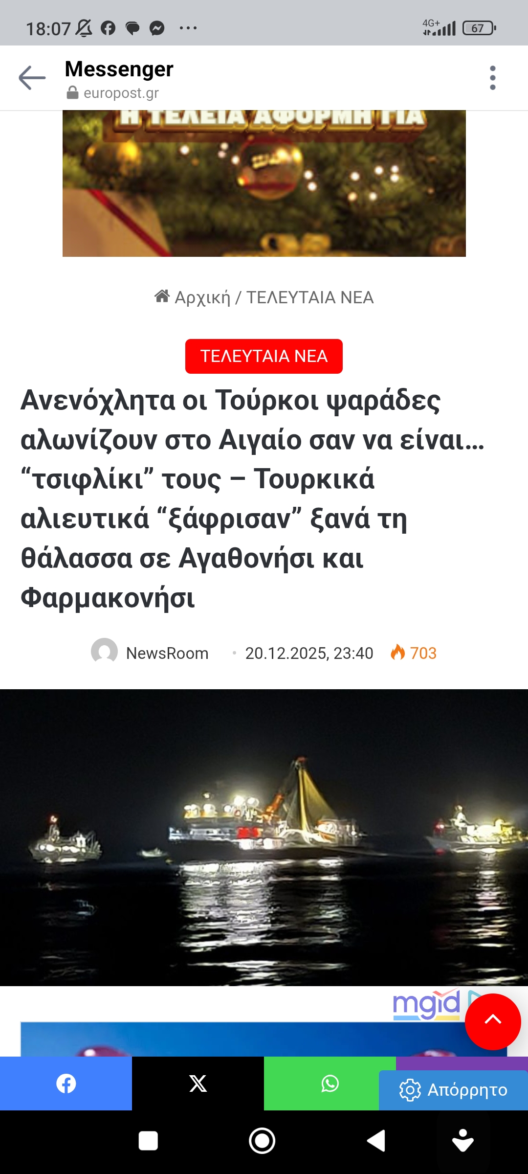 ΟικονομίαΤούρκοι ψαράδες αλωνίζουν στο Αιγαίο Πέτρος Ιωάννου4 μήνες ago4 μήνες ago01 mins Ανενόχλητα οι Τούρκοι ψαράδες αλωνίζουν στο Αιγαίο σαν να είναι… “τσιφλίκι” τους – Τουρκικά αλιευτικά “ξάφρισαν” ξανά τη θάλασσα σε Αγαθονήσι και Φαρμακονήσι Πλοήγηση άρθρων Previous: Διασχίζοντας τη Σαουδική Αραβία με τα πόδιαNext: Δε βιάζεται η Καρυστιανού μα δεν κάθεται και με σταυρωμένα χέρια Αφήστε μια απάντηση Ακύρωση απάντησηςΗ ηλ. διεύθυνση σας δεν δημοσιεύεται. Τα υποχρεωτικά πεδία σημειώνονται με *Σχόλιο * Όνομα * Email * Ιστότοπος Αποθήκευσε το όνομά μου, email, και τον ιστότοπο μου σε αυτόν τον πλοηγό για την επόμενη φορά που θα σχολιάσω.