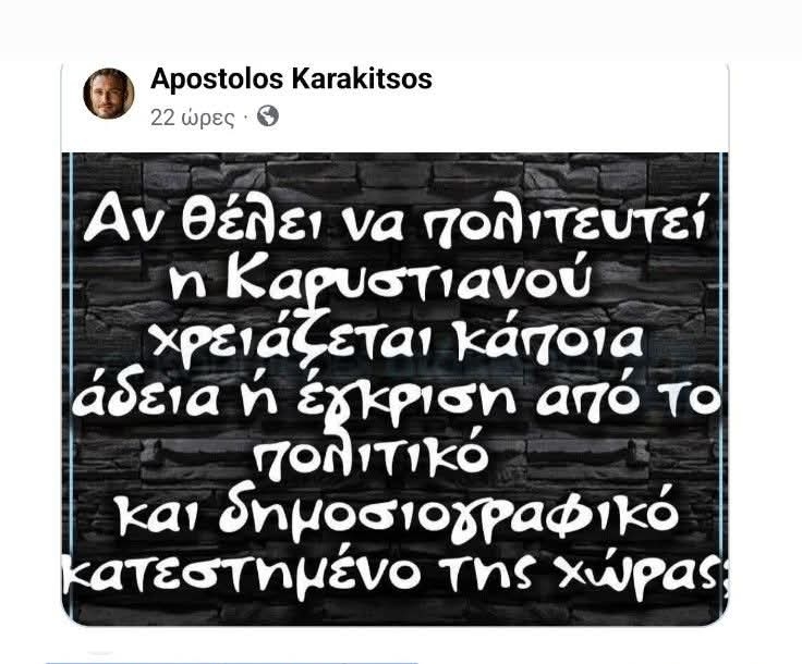 Σήμερα όμως τα πράγματα λίγο διαφέρουν. Κάτι κινείται από πλευράς Καρυστιανού. Αν προκύψει κάτι μη προσωποκεντικό, πλατύ, ευρύ, ανοιχτόμυαλο, κάτι μεγάλο κατά τη ρήση της Μαρίας, πέρα από αριστερές και “πατριωτικές” φράξιες υπάρχει ελπίδα ανάταξης του πολιτικού σκηνικού, της χώρας ολάκερης. Αν τρέξουν κι εδώ παλιές συνήθειες, αποκλεισμοί και σαλταδόροι… ανώριμοι , πάλι θα συμβούν τα ίδια, θα ομφαλοσκοπούμε , θα κλαίμε τη μοίρα μας…