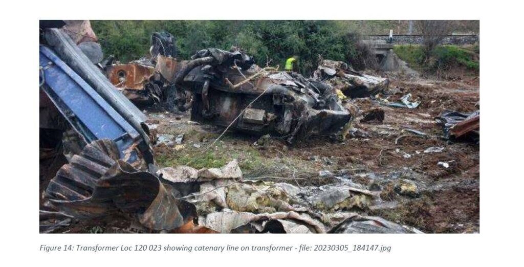 Με βάση το υποστηρικτικό υλικό που παρέχεται, μόνο ένα πολύ μικρό τμήμα της δεξαμενής του μετασχηματιστή λείπει ενώ ο μετασχηματιστής έχει διατηρήσει τη αρχική του γεωμετρία σε τουλάχιστον το 80% της δομής του. Επιπλέον, τα υπολείμματα καύσης των ελαίων M50EL σε χαμηλή θερμοκρασία πάνω σε όλη τη δεξαμενή του μετασχηματιστή υποδεικνύουν ότι δεν σημειώθηκε ουδεμία ηλεκτρική εκκένωση ακόμα και κοντά στον μετασχηματιστή.