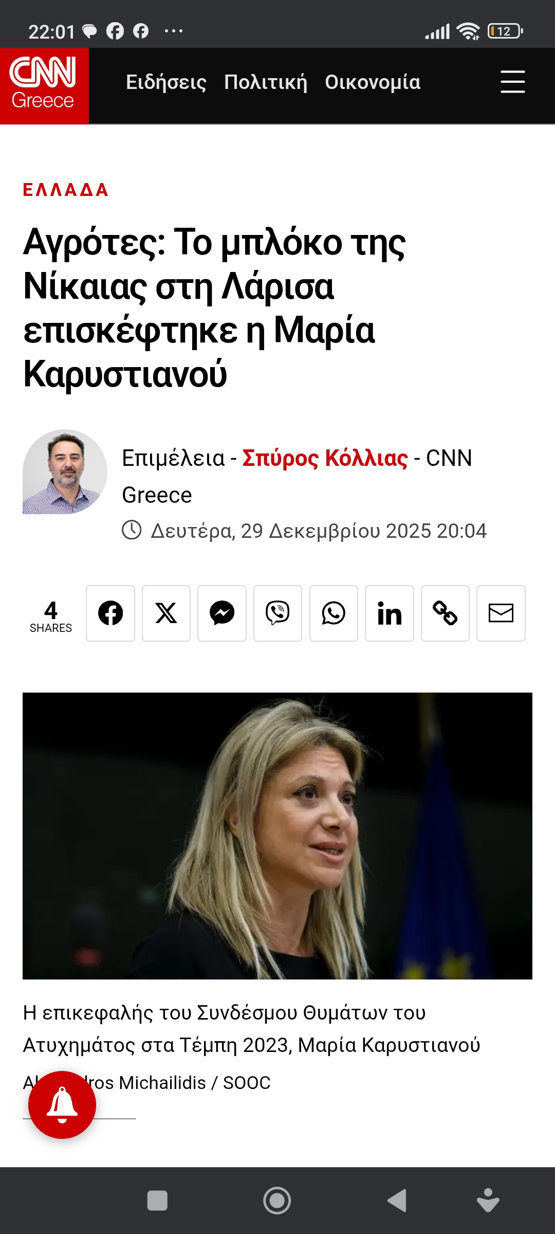 Κοινωνία / Πολιτική ΟικονομίαΣτα μπλόκα Νίκαιας, η Καρυστιανού. Προφανώς και υπάρχει λόγος Πέτρος Ιωάννου4 μήνες ago4 μήνες ago01 mins https://www.cnn.gr/ellada/story/512233/agrotes-to-bloko-tis-nikaias-sti-larisa-episkeftike-i-maria-karystianoy Πλοήγηση άρθρων Previous: Φέρε πιτόγυρο και…Next: Στη φυλακή δε βρίσκονται οι πλέον επικίνδυνοι αλλά οι φτωχοί κι αδύναμοι Αφήστε μια απάντηση Ακύρωση απάντησηςΗ ηλ. διεύθυνση σας δεν δημοσιεύεται. Τα υποχρεωτικά πεδία σημειώνονται με *Σχόλιο * Όνομα * Email * Ιστότοπος Αποθήκευσε το όνομά μου, email, και τον ιστότοπο μου σε αυτόν τον πλοηγό για την επόμενη φορά που θα σχολιάσω.