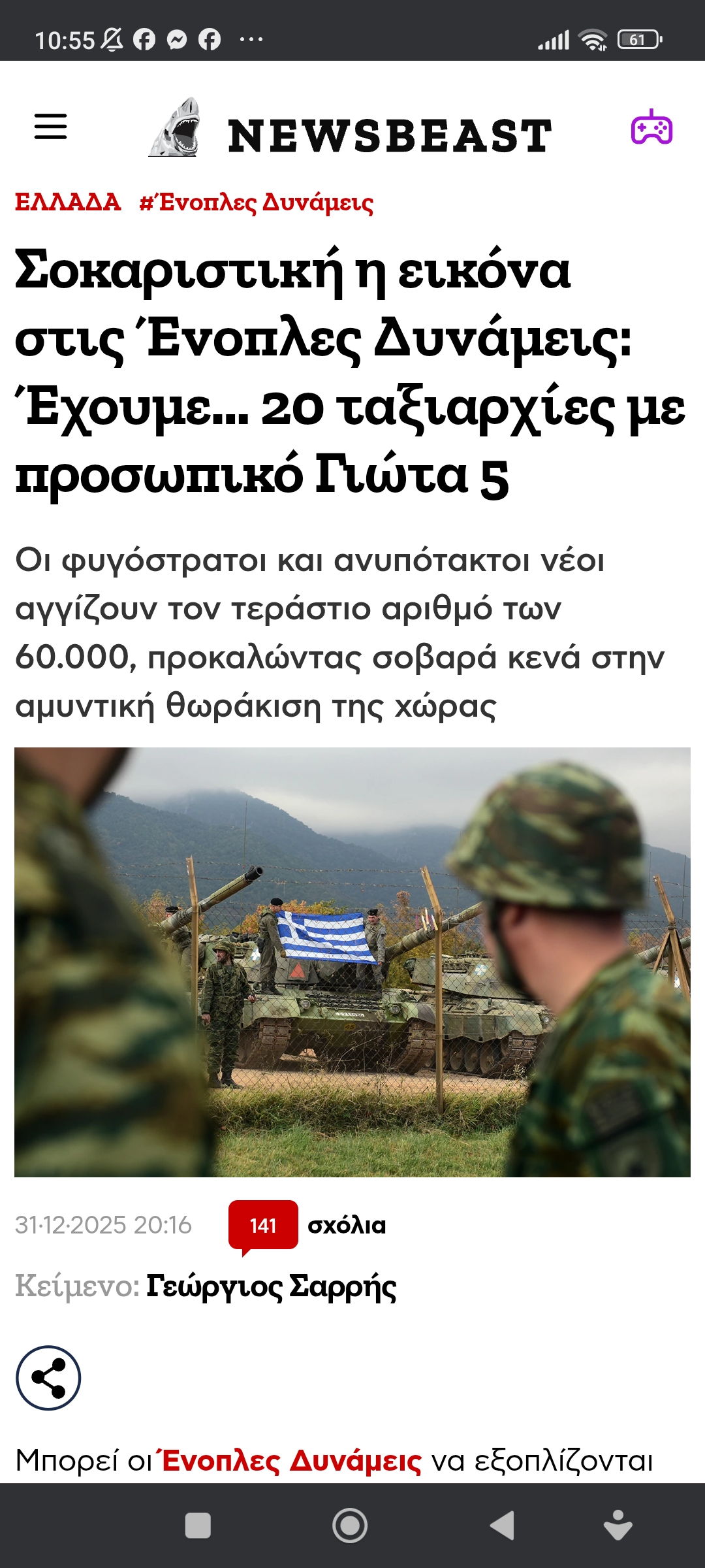 Άμυνα / ΣτρατηγικήΌπλα σύγχρονα, στρατεύσιμοι με το κερί… Πέτρος Ιωάννου3 μήνες ago3 μήνες ago01 mins https://www.newsbeast.gr/greece/arthro/12796934/sokaristiki-i-eikona-stis-enoples-dynameis-echoume-20-taxiarchies-me-prosopiko-giota-5 Πλοήγηση άρθρων Previous: “ΚΑΠΟΔΙΣΤΡΙΑΣ”. Μαυροκορδάτος και κοτσαμπάσηδες ανοικτά συνωμοτούν κατά του Κυβερνήτη. Αυτός πασχίζει για ένα δάνειο και τη συμφιλίωσηNext: Ίδιοι τότε, ίδιοι μετά. Αφήστε μια απάντηση Ακύρωση απάντησηςΗ ηλ. διεύθυνση σας δεν δημοσιεύεται. Τα υποχρεωτικά πεδία σημειώνονται με *Σχόλιο * Όνομα * Email * Ιστότοπος Αποθήκευσε το όνομά μου, email, και τον ιστότοπο μου σε αυτόν τον πλοηγό για την επόμενη φορά που θα σχολιάσω.