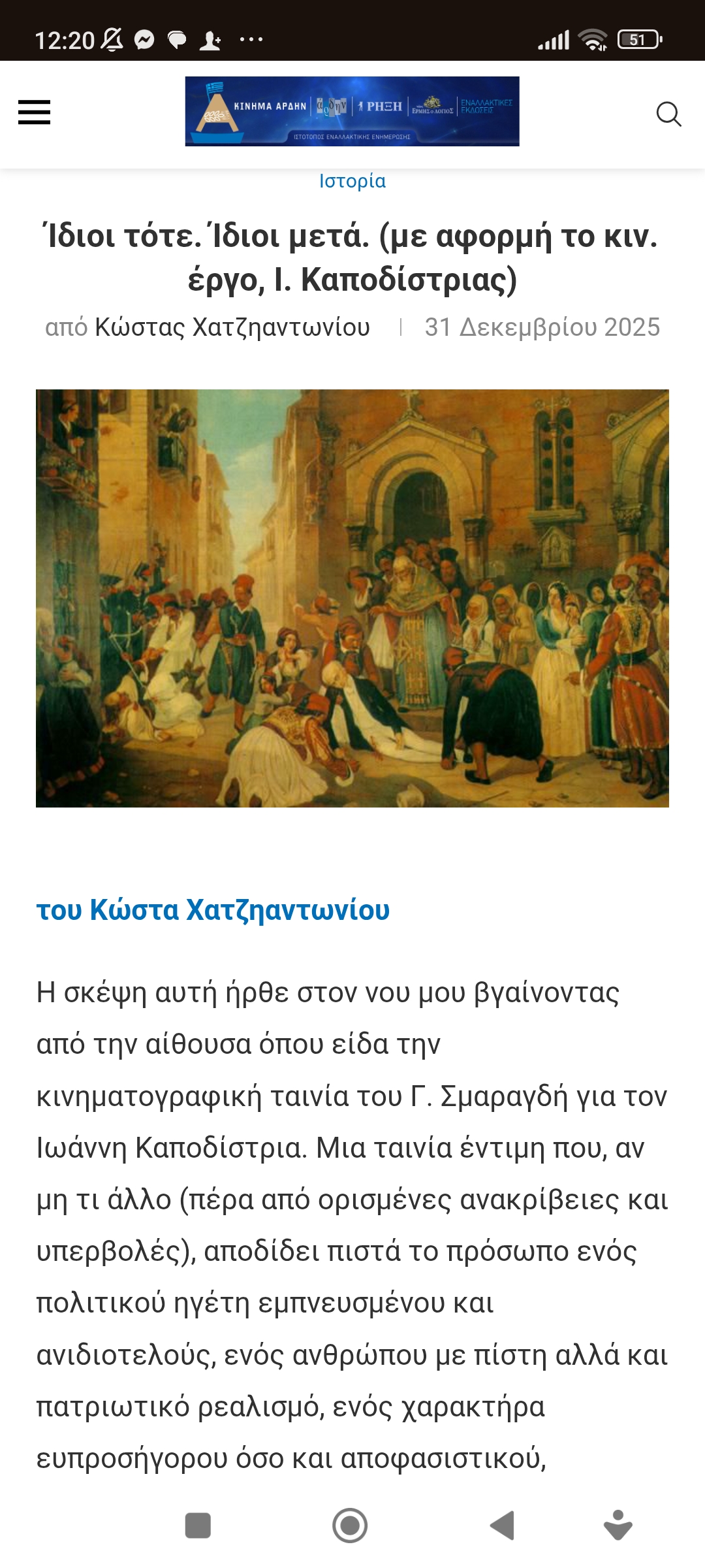 (με αφορμή το κιν. έργο, Ι. Καποδίστριας)