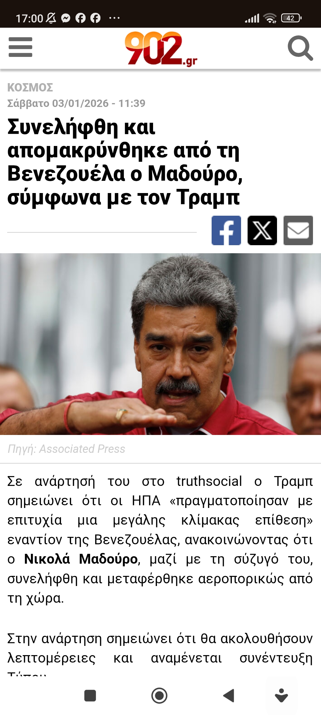 Eυρώπη / ΔιεθνήΠαλιά οι ΗΠΑ “φύτευαν” κι από μία χούντα, τώρα; Πέτρος Ιωάννου3 μήνες ago3 μήνες ago01 mins https://www.902.gr/eidisi/kosmos/410952/synelifthi-kai-apelathike-apo-ti-venezoyela-o-madoyro-symfona-me-ton-tramp Πλοήγηση άρθρων Previous: Σκίτσο του Κώστα Σκλαβενίτη για τα ΝΕΑNext: Σοκ απ’ την ωμή εισβολή των ΗΠΑ στη Βενεζουέλα Αφήστε μια απάντηση Ακύρωση απάντησηςΗ ηλ. διεύθυνση σας δεν δημοσιεύεται. Τα υποχρεωτικά πεδία σημειώνονται με *Σχόλιο * Όνομα * Email * Ιστότοπος Αποθήκευσε το όνομά μου, email, και τον ιστότοπο μου σε αυτόν τον πλοηγό για την επόμενη φορά που θα σχολιάσω.