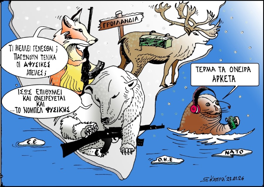 ...ξανά στα θρανία, στη μεγάλη των γελοιογράφων σχολήΑρκετά… Πέτρος Ιωάννου2 μήνες ago2 μήνες ago01 mins Σκίτσο του Γιώργου Καπράνου για τo ArcadiaPortal.gr 23 Ιανουαρίου 2026 Πλοήγηση άρθρων Previous: Σκίτσο του Γιώργου Καπράνου για το arcadiaportal.grNext: Έντι Ράμα στην Κνεσέτ: “Είμαι καθολικός, η γυναίκα μου μουσουλμάνα, τα δυο παιδιά μας ορθόδοξα, το τρίτο μπορεί να γίνει Ιουδαίος” Αφήστε μια απάντηση Ακύρωση απάντησηςΗ ηλ. διεύθυνση σας δεν δημοσιεύεται. Τα υποχρεωτικά πεδία σημειώνονται με *Σχόλιο * Όνομα * Email * Ιστότοπος Αποθήκευσε το όνομά μου, email, και τον ιστότοπο μου σε αυτόν τον πλοηγό για την επόμενη φορά που θα σχολιάσω.