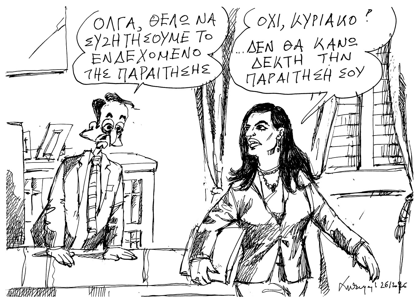 ...ξανά στα θρανία, στη μεγάλη των γελοιογράφων σχολήΣκίτσο Πετρουλάκη για την ΚΑΘΗΜΕΡΙΝΗ Πέτρος Ιωάννου3 μήνες ago3 μήνες ago01 mins Τα σκίτσα της ημέρας Ανδρέας Πετρουλάκης Πλοήγηση άρθρων Previous: Σκίτσο της Εφ.Συν. [Μ.Κουντούρης 28.01.2026]Next: ΓΛΥΦΑΔΑ ΩΡΑ ΜΗΔΕΝ… Αφήστε μια απάντηση Ακύρωση απάντησηςΗ ηλ. διεύθυνση σας δεν δημοσιεύεται. Τα υποχρεωτικά πεδία σημειώνονται με *Σχόλιο * Όνομα * Email * Ιστότοπος Αποθήκευσε το όνομά μου, email, και τον ιστότοπο μου σε αυτόν τον πλοηγό για την επόμενη φορά που θα σχολιάσω.
