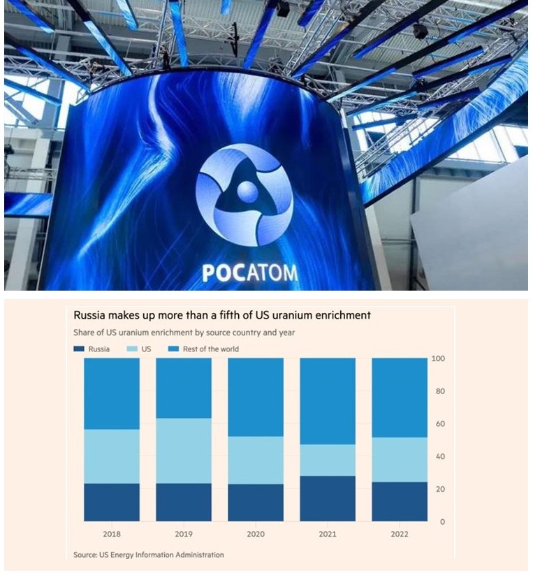 Υπάρχουν μόνο λίγοι δυτικοί προμηθευτές εμπλουτισμού για πυρηνικά καύσιμα, συμπεριλαμβανομένων των γαλλικών Orano και Urenco, μιας βρετανικής, γερμανικής και ολλανδικής κοινοπραξίας. Η Tenex, θυγατρική της Rosatom, είναι η μόνη εταιρεία στον κόσμο που παρέχει εμπορικές πωλήσεις ενός νέου τύπου καυσίμου που ονομάζεται Haleu – υψηλής ανάλυσης ουράνιο χαμηλού εμπλουτισμού – που είναι εμπλουτισμένο μεταξύ 5-20% και θα μπορούσε να τροφοδοτήσει μια νέα γενιά μικρότερων, πιο αποδοτικών αντιδραστήρων.
