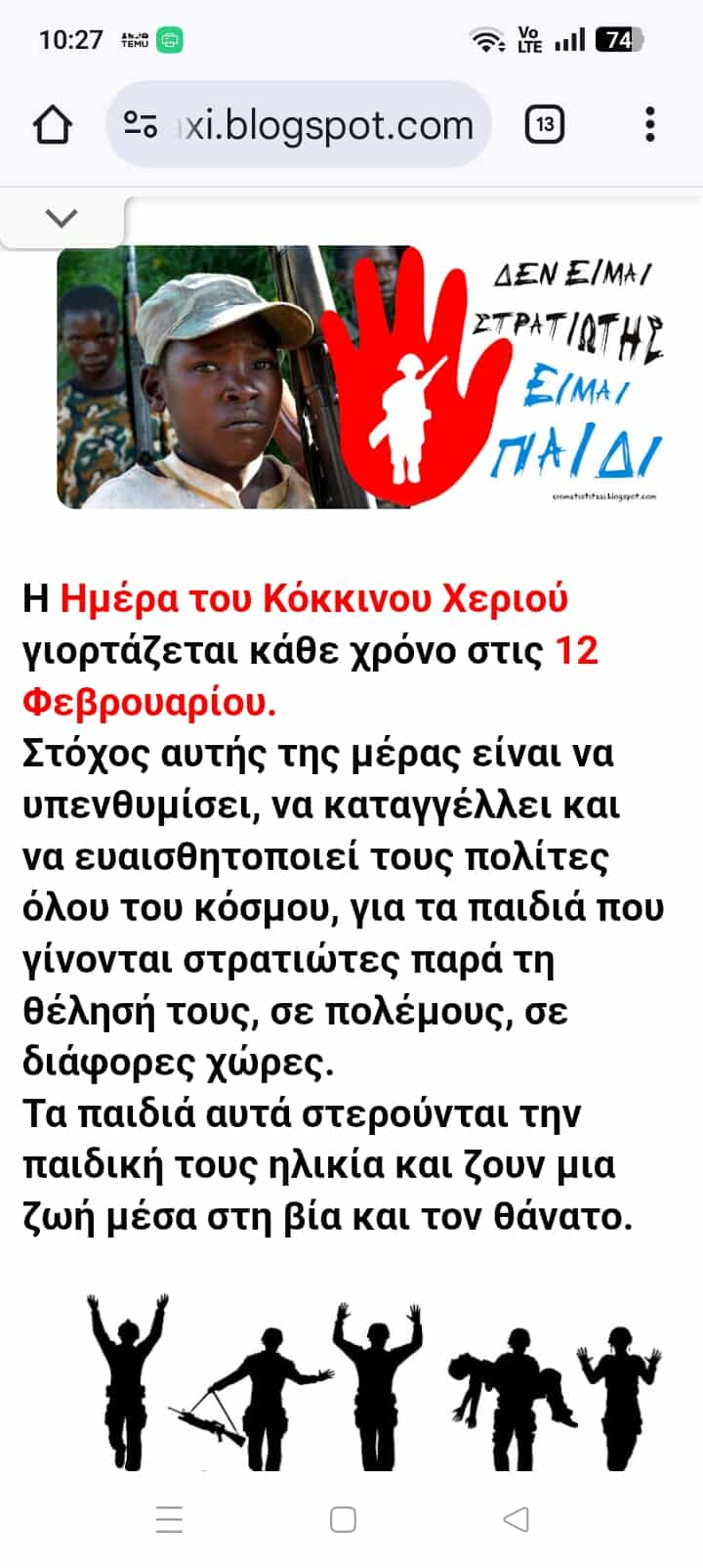 Το ’98 αντίκρυ απ΄τα σχολεία της Ελληνικής κοινότητας, κάτω απ΄το σπίτι μου στην Κινσάσα (Κονγκό) συναντώ ένα πιτσιρικά φαντάρο, πιθανόν να είχε κι όπλο, δεν θυμάμαι καλά… Του λέω 15 χρονών είσαι; Ναί μου λέει…