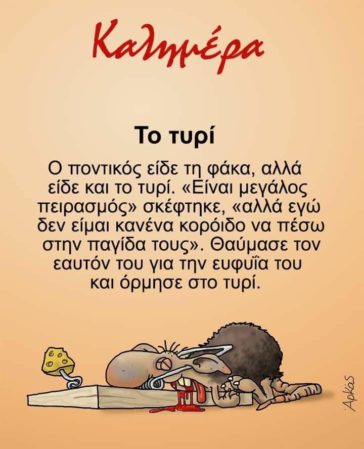 ...ξανά στα θρανία, στη μεγάλη των γελοιογράφων σχολήΕίτε διακρίνει τη φάκα την παγιδα είτε όχι το αποτέλεσμα μετράει κι είναι οικτρά τα πράγματα γι ανθρώπους και ποντίκια… Πέτρος Ιωάννου2 μήνες ago2 μήνες ago01 mins 20/2/2026 Πλοήγηση άρθρων Previous: Γιατί να προτιμούμε να φορτώνουμε τα λάθη στη ράχη μας ενώ μπορούν να γίνουν σκαλοπάτια ανόδου;Next: Μη καις μια μια τις ευκαιρίες σου για όφελος προσωρινό… Αφήστε μια απάντηση Ακύρωση απάντησηςΗ ηλ. διεύθυνση σας δεν δημοσιεύεται. Τα υποχρεωτικά πεδία σημειώνονται με *Σχόλιο * Όνομα * Email * Ιστότοπος Αποθήκευσε το όνομά μου, email, και τον ιστότοπο μου σε αυτόν τον πλοηγό για την επόμενη φορά που θα σχολιάσω.