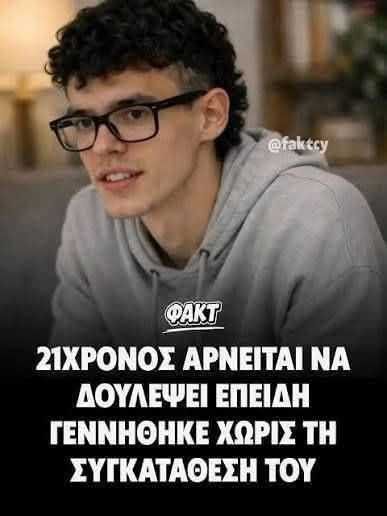 Σύμφωνα με τον ίδιο, από τη στιγμή που δεν έδωσε «συναίνεση» για να έρθει στον κόσμο, οι γονείς του οφείλουν να καλύπτουν τα έξοδά του.