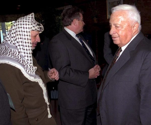Οι αντίπαλοι Γιάσερ Αραφάτ και Αριέλ Σαρόν το 1998, στη μοναδική ίσως συνάντηση που πλησίασαν τόσο κοντά ο ένας τον άλλον.