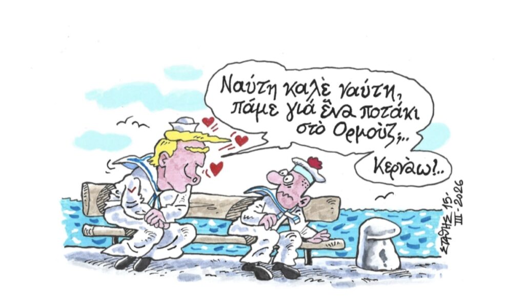 ...ξανά στα θρανία, στη μεγάλη των γελοιογράφων σχολήΤραμπ, πειρατής χωρίς καράβι…ΣΤΑΘΗΣ Πέτρος Ιωάννου1 μήνα ago1 μήνα ago01 mins 17/3/2026 16/03/2026 | Militaire News «Ναύτης βγαίνει στο Ορμούζ για περιπολία»…ΣΤΑΘΗΣ #ΣΤΑΘΗΣ ΣΚΙΤΣΟ Πηγή: militaire Πλοήγηση άρθρων Previous: ΑΔΕΙΑ ΡΕΖΕΡΒΟΥΑΡNext: Σκίτσο του Αντώνη Βαβαγιάννη Αφήστε μια απάντηση Ακύρωση απάντησηςΗ ηλ. διεύθυνση σας δεν δημοσιεύεται. Τα υποχρεωτικά πεδία σημειώνονται με *Σχόλιο * Όνομα * Email * Ιστότοπος Αποθήκευσε το όνομά μου, email, και τον ιστότοπο μου σε αυτόν τον πλοηγό για την επόμενη φορά που θα σχολιάσω.