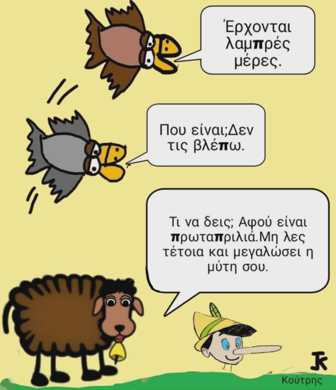 ...ξανά στα θρανία, στη μεγάλη των γελοιογράφων σχολήΚάτι μου λέει πως έχουμε πρωταπριλιά κάθε μέρα στην Ελλάδα… Πέτρος Ιωάννου4 ημέρες ago4 ημέρες ago01 mins Σκίτσο του Γιάννη Κούτρη 29/3/2026 Πλοήγηση άρθρων Previous: Γιαΐρ Βολάνσκι: «Τι κάναμε για να το αξίζουμε αυτό;»Next: . Αφήστε μια απάντηση Ακύρωση απάντησηςΗ ηλ. διεύθυνση σας δεν δημοσιεύεται. Τα υποχρεωτικά πεδία σημειώνονται με *Σχόλιο * Όνομα * Email * Ιστότοπος Αποθήκευσε το όνομά μου, email, και τον ιστότοπο μου σε αυτόν τον πλοηγό για την επόμενη φορά που θα σχολιάσω.