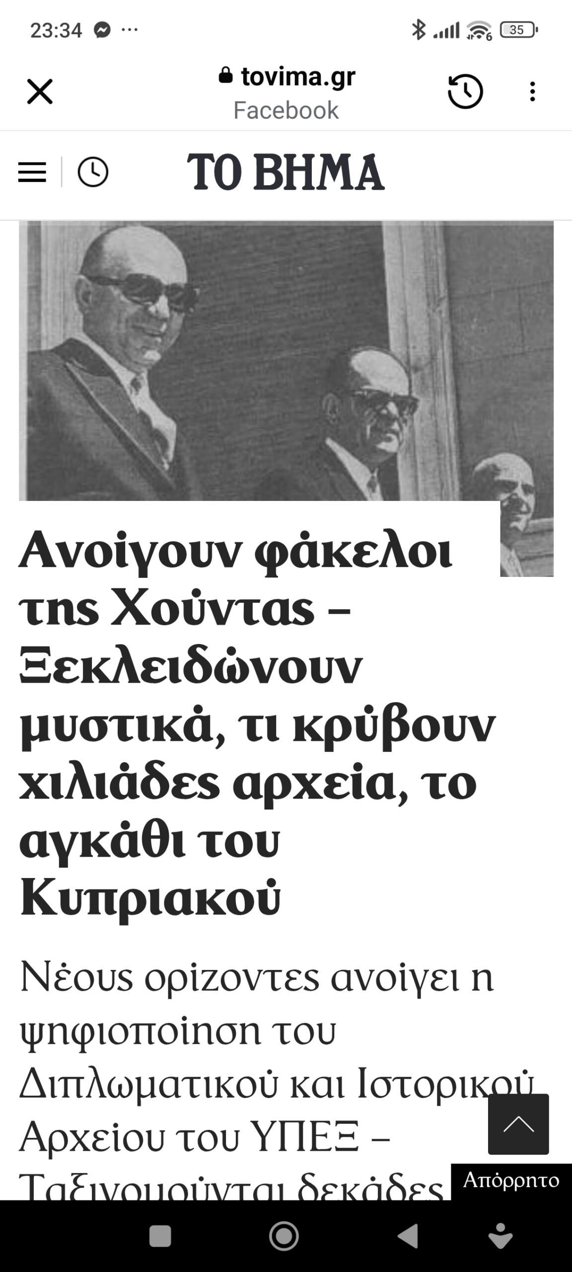 ΙστορίαΝα κι ένα θετικό από την ψηφιοποίηση αρχείων στο ΥΠΕΞ Πέτρος Ιωάννου1 εβδομάδα ago1 εβδομάδα ago01 mins 6/4/2026 Ανοίγουν φάκελοι της Χούντας – Ξεκλειδώνουν μυστικά, τι κρύβουν χιλιάδες αρχεία, το αγκάθι του Κυπριακού Πλοήγηση άρθρων Previous: Όταν ο οβελίας παίρνει..τα φτερά τουNext: Η τρυφερότητα θ’ αλλάξει τον κόσμο Αφήστε μια απάντηση Ακύρωση απάντησηςΗ ηλ. διεύθυνση σας δεν δημοσιεύεται. Τα υποχρεωτικά πεδία σημειώνονται με *Σχόλιο * Όνομα * Email * Ιστότοπος Αποθήκευσε το όνομά μου, email, και τον ιστότοπο μου σε αυτόν τον πλοηγό για την επόμενη φορά που θα σχολιάσω.