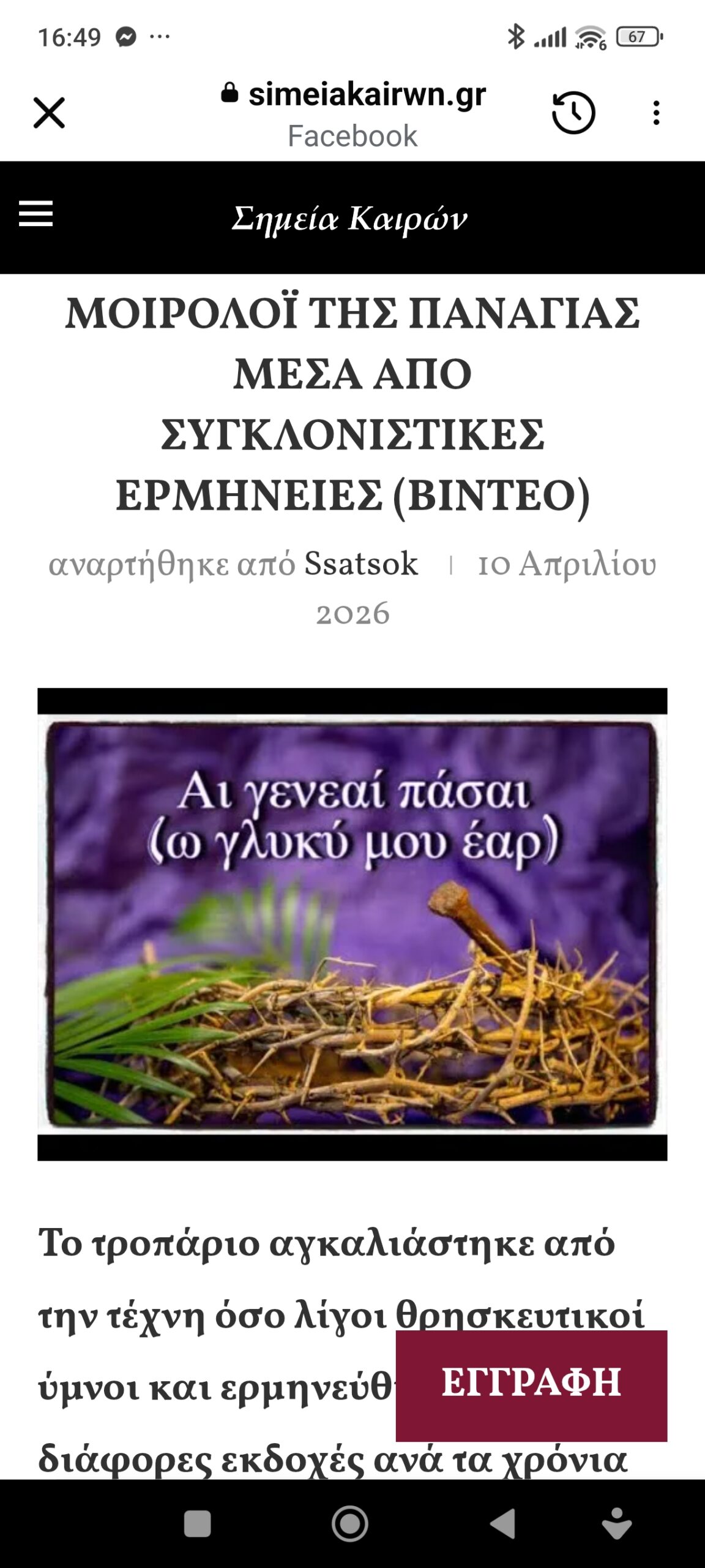 "Πίστη το ένα το σκαλί..."Μοιρολόι της Παναγίας μέσα από συγκλονιστικές ερμηνείες (Βίντεο) Πέτρος Ιωάννου5 ημέρες ago5 ημέρες ago01 mins αναρτήθηκε από ssatsok 10 Απριλίου 2026 https://www.facebook.com/share/p/1Qy2RCzrbt Πλοήγηση άρθρων Previous: Το σκίτσο της Παρασκευής 10.04.2026Next: Πόσα μπορούν να συμβούν σε μία εβδομάδα Αφήστε μια απάντηση Ακύρωση απάντησηςΗ ηλ. διεύθυνση σας δεν δημοσιεύεται. Τα υποχρεωτικά πεδία σημειώνονται με *Σχόλιο * Όνομα * Email * Ιστότοπος Αποθήκευσε το όνομά μου, email, και τον ιστότοπο μου σε αυτόν τον πλοηγό για την επόμενη φορά που θα σχολιάσω.