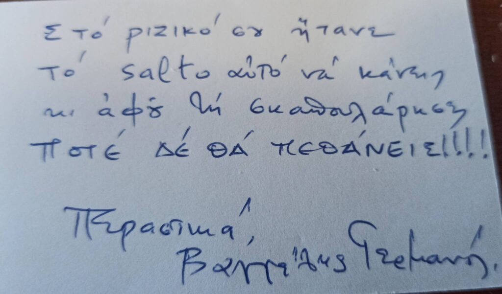 Άρα προχθές είχα γενέθλια. Έγινα 36 στη δεύτερη ζωή μου. Βέβαια είναι κάτι που σημάδεψε τη ζωή μου. Συνέβησαν πολλά. Στο μυαλό; Στ’ αλήθεια. Δε θέλω να ξέρω. Έπεσα με αεροπλάνο και είμαι ακόμα εδώ. Χάρη στον Αλέξη , στους κατοίκους του χωριού Γεράκι , και καμμιά φορά με τον αγαπημένο μου Βασίλη Βλαχοδημητρόπουλο που ήταν κι αυτός μέσα , προσπαθούμε να κάνουμε το παζλ και λέμε “το είδες και συ”;