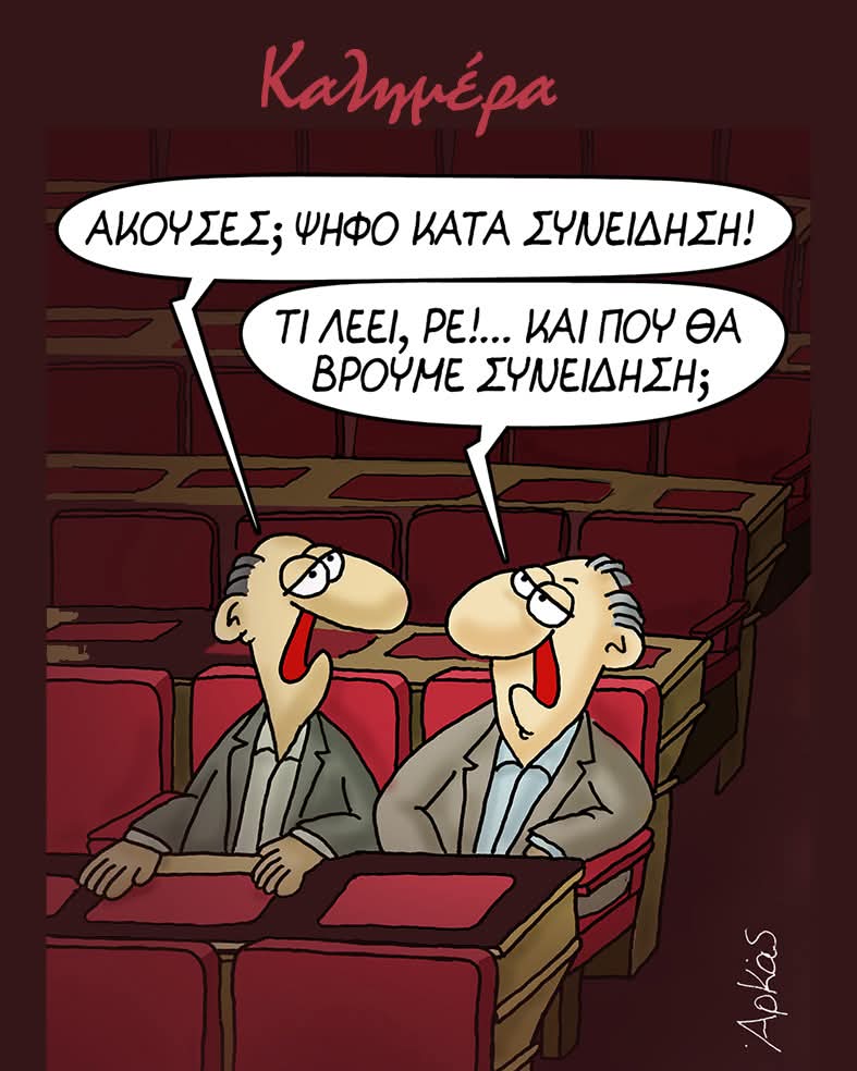 ...ξανά στα θρανία, στη μεγάλη των γελοιογράφων σχολήΗ καλημέρα του Αρκά Πέτρος Ιωάννου2 ημέρες ago2 ημέρες ago01 mins 22/4/2026 Πλοήγηση άρθρων Previous: Υπάρχει άλλος δρόμος για την ελληνική οικονομία; 4 άνθρωποι που κράτησαν τα ηνία της δίνουν απαντήσειςNext: Η πρώην πρύτανης στο Πανεπιστήμιο Μακεδονία, Μαρία Νεγρεπόντη Δεληβάνη επιμένει για τις γερμανικές επανορθώσεις – αποζημιώσεις. Η βιοπάλη κρατά το λαό μακρυά από τις κινητοποιήσεις Αφήστε μια απάντηση Ακύρωση απάντησηςΗ ηλ. διεύθυνση σας δεν δημοσιεύεται. Τα υποχρεωτικά πεδία σημειώνονται με *Σχόλιο * Όνομα * Email * Ιστότοπος Αποθήκευσε το όνομά μου, email, και τον ιστότοπο μου σε αυτόν τον πλοηγό για την επόμενη φορά που θα σχολιάσω.