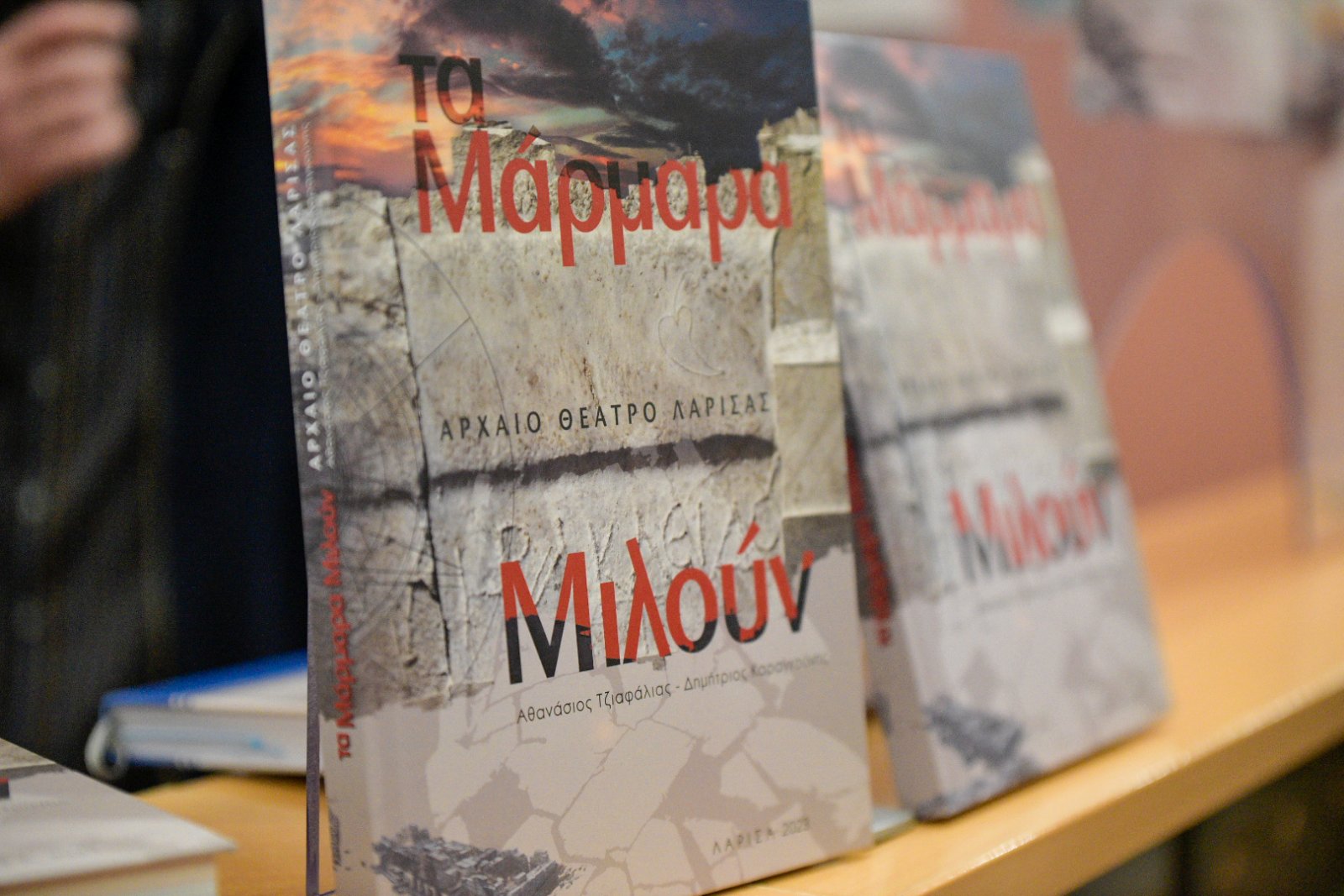 Το ενδιαφέρον του Λαρισινού κοινού συγκέντρωσε σήμερα, το απόγευμα της Πέμπτης, η παρουσίαση του βιβλίου «Τα μάρμαρα μιλούν», στο Χατζηγιάννειο Πνευματικό Κέντρο, ενός βιβλίου – αφιερώματος στο Α’ Αρχαίο Θέατρο της πόλης.