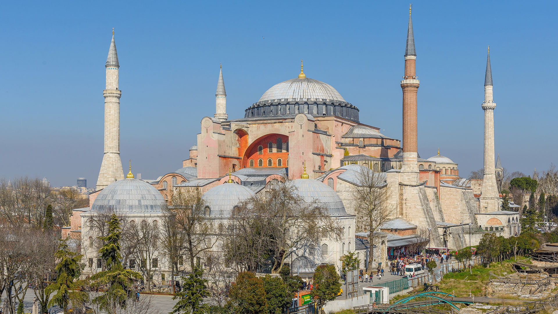 Αναμφίβολα ένα από τα επιτεύγματα της εποχής του Ιουστινιανού είναι ο ναός της Αγίας του Θεού Σοφίας στην Κωνσταντινούπολη. Πρώτος ο Μέγας Κωνσταντίνος ήταν εκείνος ο οποίος έδωσε την εντολή για την οικοδόμηση ενός ναού αφιερωμένου στη Σοφία του Θεού στην περιοχή γύρω από το Μέγα Παλάτιο. Η κατασκευή του ναού διήρκεσε αρκετά χρόνια. Τα εγκαίνια πραγματοποιήθηκαν το 360. Εκείνος ο ναός καταστράφηκε από πυρκαγιά το 404 και ανοικοδομήθηκε την περίοδο της Αρχής του Θεοδοσίου Β΄. Τα εγκαίνια της νέας εκκλησίας πραγματοποιήθηκαν τον Ιανουάριο του 415 από τον πατριάρχη Κωνσταντινουπόλεως Αττικό. Έναν αιώνα περίπου αργότερα, το 532, η Αγία Σοφία παραδόθηκε ξανά στις φλόγες, στη διάρκεια των βιαιότατων ταραχών, οι οποίες ξέσπασαν στην Κωνσταντινούπολη στο πλαίσιο της Στάσης του Νίκα.