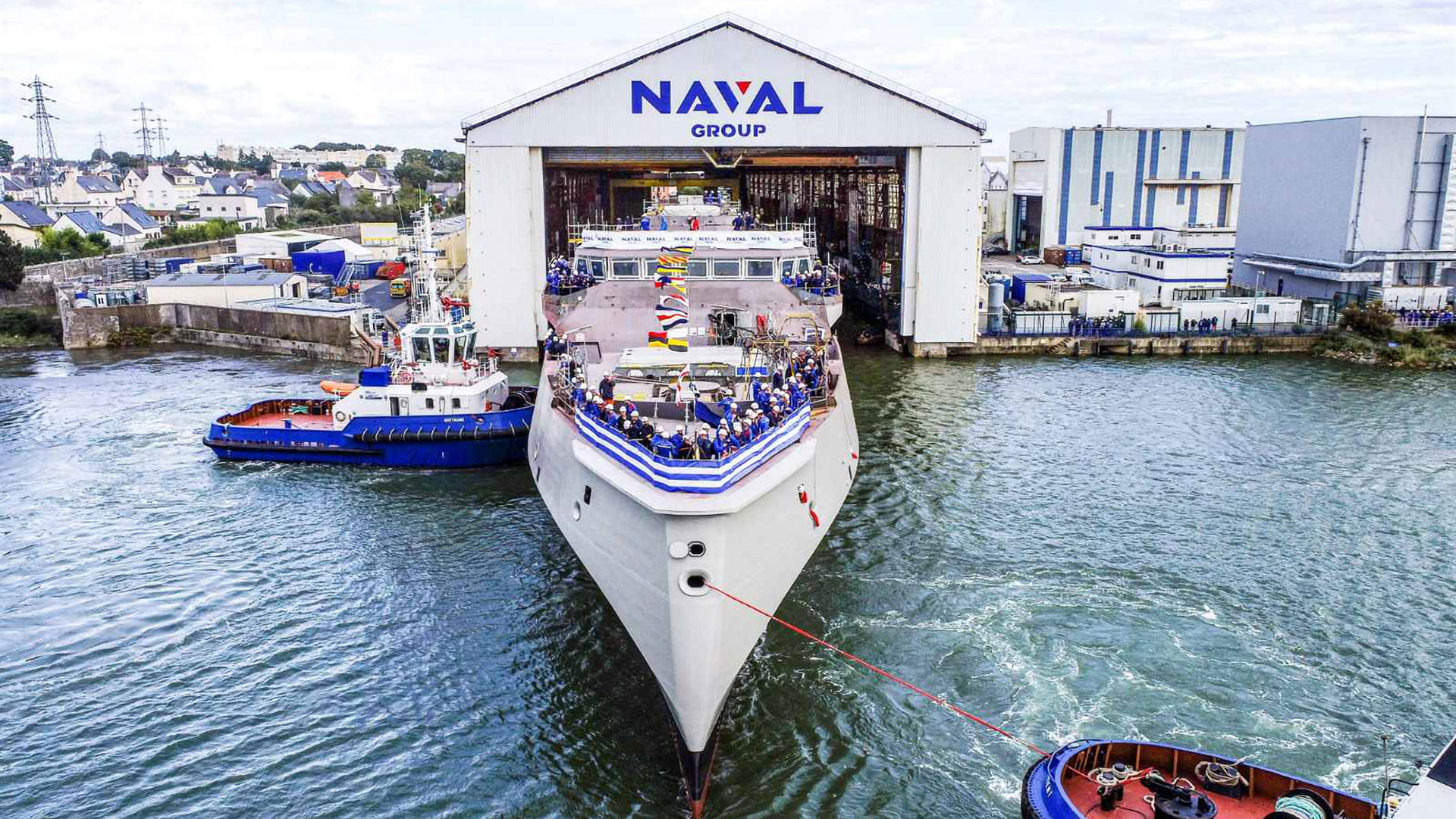 Η τελετή καθέλκυσης της ελληνικής φρεγάτας Belhara «Κίμων» στα ναυπηγεία της Naval Group στη Γαλλία, τον Οκτώβριο του 2023. «Η ανάπτυξη του ανθρώπινου κεφαλαίου της θαλάσσιας ισχύος παραμένει η σημαντικότερη πρόκληση που αντιμετωπίζουμε (ας ξεκινήσουμε από την πρόκληση διατήρησής του). Απαιτείται συγκεκριμένο σύνολο δεξιοτήτων, νοοτροπίας και ήθους για να πλεύσουν τα πλοία, να ελέγχουν τον ορίζοντα και να καταναυμαχούν τον αντίπαλο». [ΥΠΟΥΡΓΕΙΟ ΕΘΝΙΚΗΣ ΑΜΥΝΑΣ]