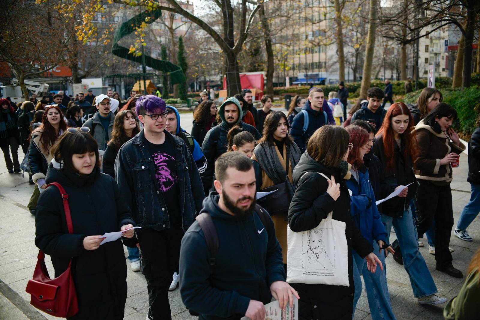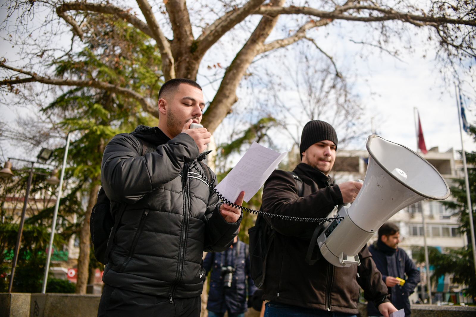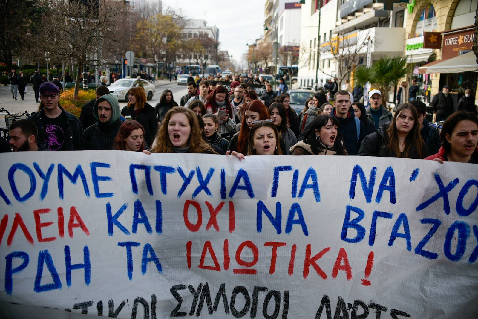 «Βρισκόμαστε εδώ σήμερα μαζί με άλλους φοιτητικούς συλλόγους για να δώσουμε ένα ηχηρό μήνυμα στην κυβέρνηση και τα υπόλοιπα κόμματα, που θέλουν να δώσουν ένα πολύ γερό “χτύπημα” στις σπουδές και τα πτυχία μας. Εμείς φωνάζουμε δυνατά ότι δεν θα δεχτούμε, ούτε οι φοιτητές ούτε οι μαθητές, να υποβαθμίζουν τα πτυχία μας και να τσακίζουν τη μόρφωσή μας. Δεν δεχόμαστε η μόρφωσή μας να επιλέγεται με βάση ποιος φοιτητής έχει ή δεν έχει χρήματα για να σπουδάσει», τονίζουν οι φοιτητές.