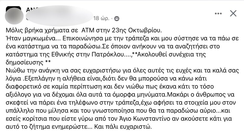 Θεσσαλία / ΛάρισαΛαρισαία βρήκε… μαγκωμένα χρήματα σε ΑΤΜ στο κέντρο της Λάρισας – Η κίνησή της και ο καταιγισμός μηνυμάτων Πέτρος Ιωάννου2 έτη ago01 mins 02/02/2024 – 10:05 Πλοήγηση άρθρων Previous: Βλαδίμηρος Κυριακίδης: Όλοι οι άνθρωποι πρέπει να κουβαλάμε μια επανάστασηNext: Νεογέννητο: Πώς θα καταλάβετε πότε πεινάει πραγματικά το μωρό σας; Αφήστε μια απάντηση Ακύρωση απάντησηςΗ ηλ. διεύθυνση σας δεν δημοσιεύεται. Τα υποχρεωτικά πεδία σημειώνονται με *Σχόλιο * Όνομα * Email * Ιστότοπος Αποθήκευσε το όνομά μου, email, και τον ιστότοπο μου σε αυτόν τον πλοηγό για την επόμενη φορά που θα σχολιάσω.