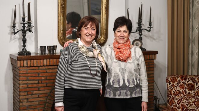 Η Νίκη (αριστερά) με τη Φρόσω Λάππα στο σπίτι τους. Πάνω, ο παππούς τους Ιωάννης Λάππας, νομικός και διπλωμάτης. [ΝΙΚΟΣ ΚΟΚΚΑΛΙΑΣ]