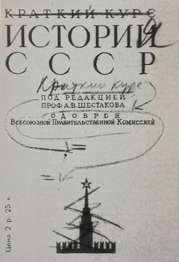 Εξώφυλλο της «Σύντομης Ιστορίας της ΕΣΣΔ» του Αντρέι Σεστάκοφ. Ο Στάλιν πρότεινε την αλλαγή του τίτλου σε: «Ιστορία της ΕΣΣΔ: ένα σύντομο εγχειρίδιο», αλλά ο αρχικός διατηρήθηκε. (Ρωσικό Κρατικό Αρχείο Κοινωνικοπολιτικής Ιστορίας | RGASPI)