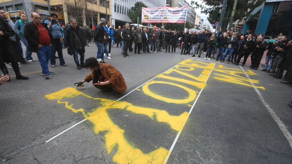 Από διαμαρτυρία έξω από το κτίριο της Hellenic Train στη λεωφόρο Συγγρού | ΓΙΑΝΝΗΣ ΠΑΝΑΓΟΠΟΥΛΟΣ/EUROKINISSΙ