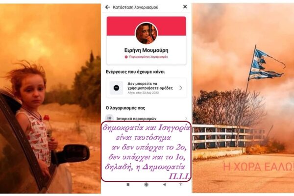 Δύο θέματα σήμερα, με οργή και απέραντη θλίψη, για όσα βλέπω και όσα, ακόμα πιο πολύ, για όσα καταλαβαίνω για να μην τα πνίγω μέσα μου Διαβάζω: 1. «συλλαμβάνεται στὴν Ρόδο γερμανὸς 20χρονος, καταδικάζεται γιὰ ΤΟΥΛΑΧΙΣΤΟΝ μία φωτιὰ στὸ νησὶ καὶ τιμωρεῖται μὲ ποινὴ φυλακίσεως ἑνὸς ἔτους ΜΕ ΤΡΙΕΤΗ ΑΝΑΣΤΟΛΗ. Ὁ δικαστής, γράφουν, βρῆκε ἐλαφρυντικὸ…