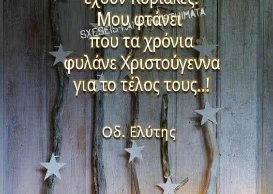 Η τέχνη γεννιέται απ’ τις ελλείψεις μας, τις κακουχίες 29/12/2025 Ο άνθρωπος δε θα έψαχνε την αρμονία σε άλλες δραστηριότητες. Θα ζούσε μέσα της. Η Τέχνη γεννιέται από τις κακουχίες του κόσμου… Αντρέι Ταρκόφσκι. Σαν σήμερα, το 1986, έφυγε από τη ζωή..