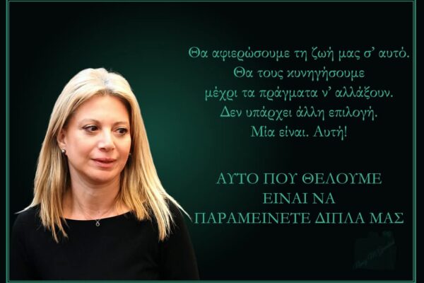Έτυχε να τη γνωρίσω από κοντά. Είναι και δεν είναι ήρεμη δύναμη. Με όλα τα θετικά και τα στραβά της, όπως όλοι μας. Μετά από παλινωδίες επί τέλους πέρασε τον Ρουβίκωνα. Αυτό θέλαμε να τολμήσει με ότι συνεπάγεται (Θ’ αγαπηθεί και θα μισηθεί). Πως να μην είμαι μαζί της 19/12/2025